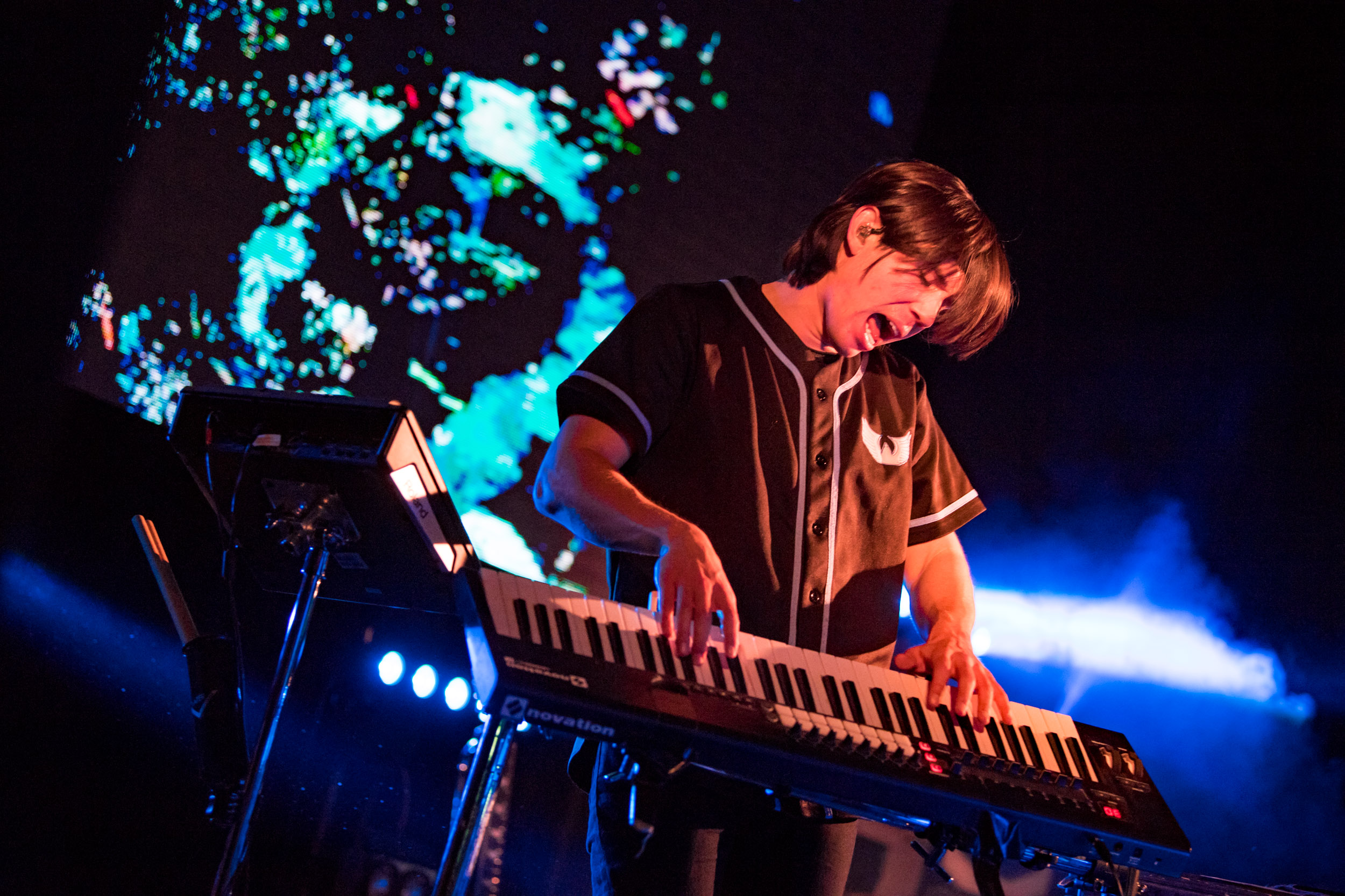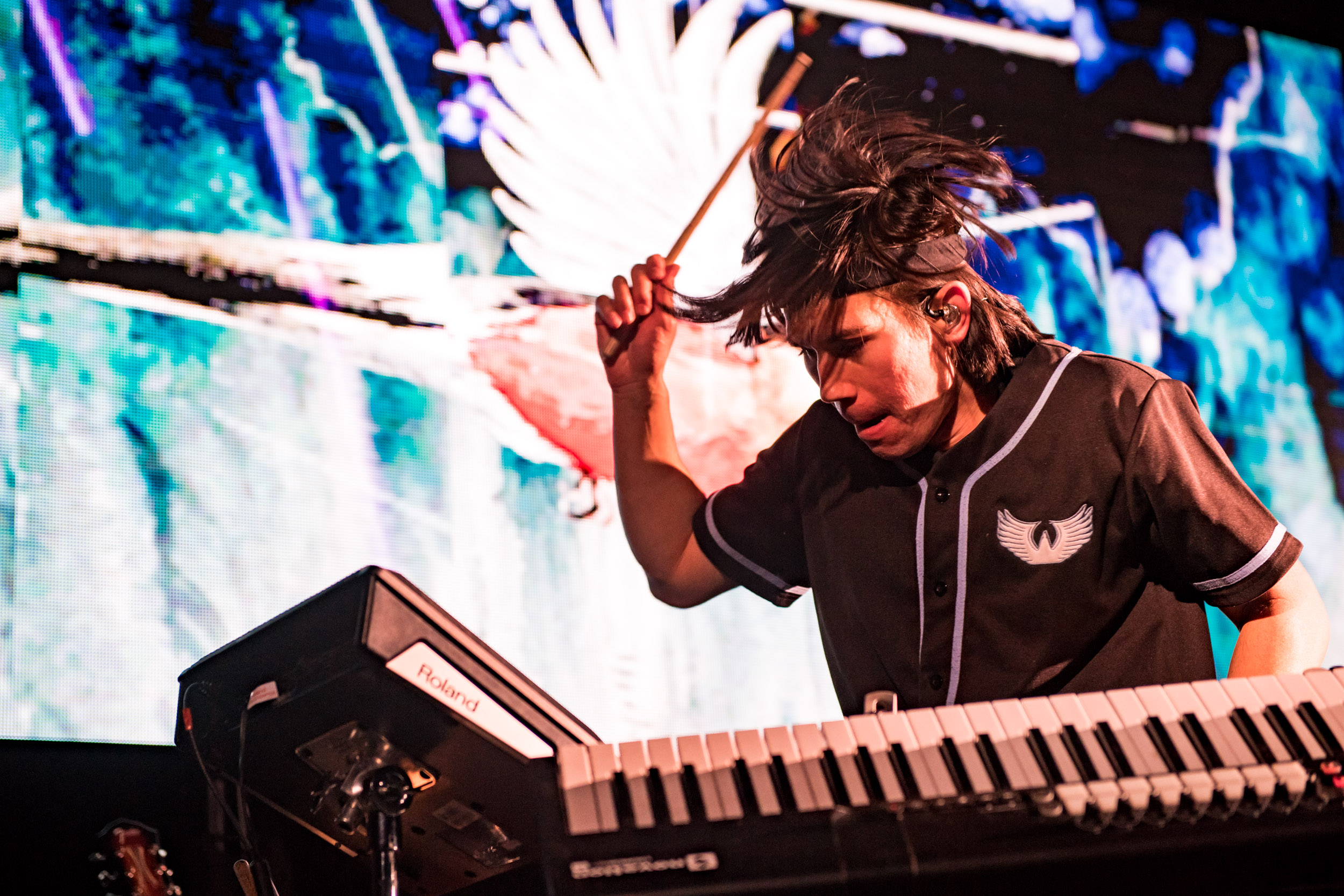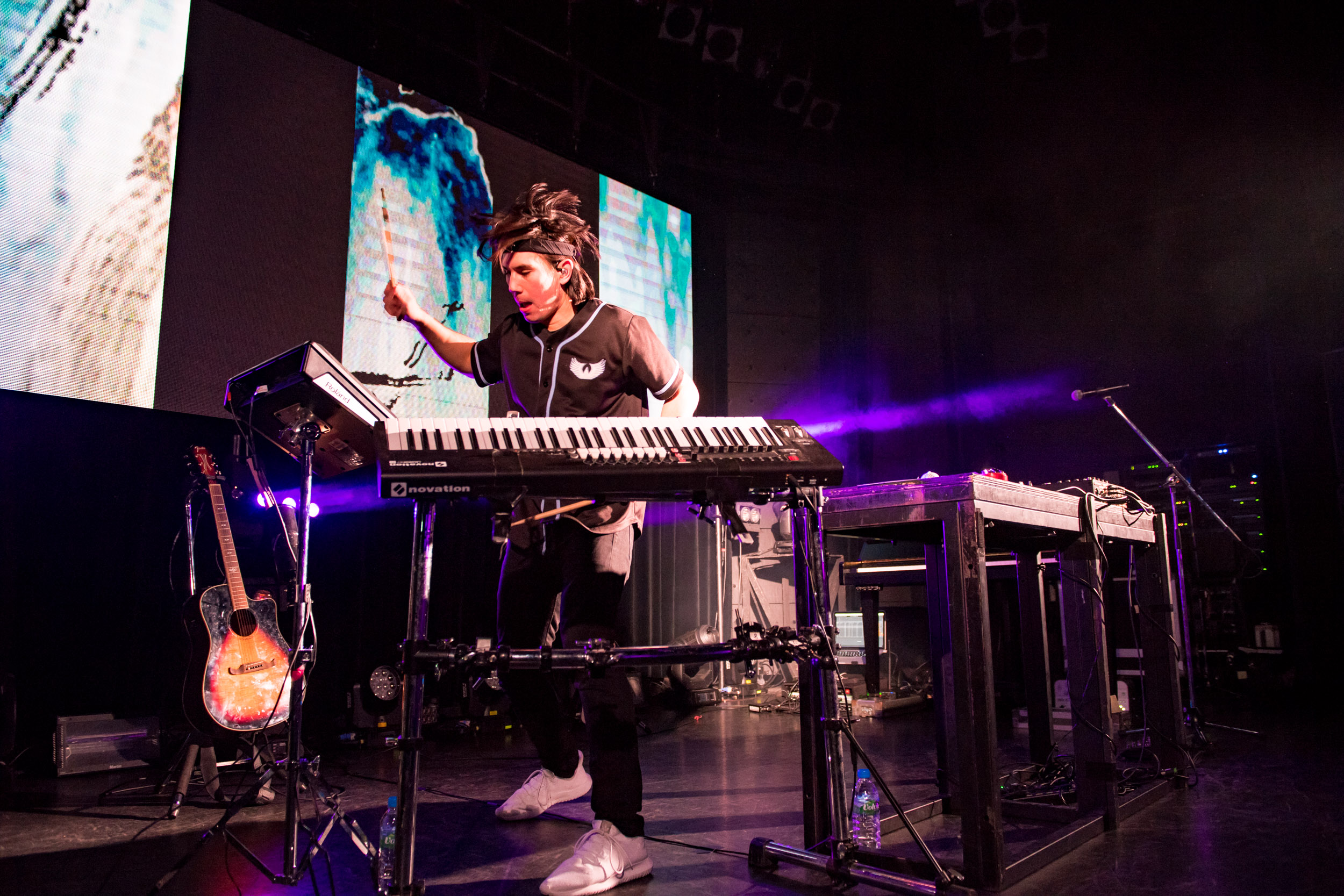 “Heading Home“ではギターソロが圧巻。ライブセットでは、DJプレイを披露するのはもちろんのこと、ギターやシンセ、ドラムパッドなどもプレイして、見せ場が盛りだくさん。